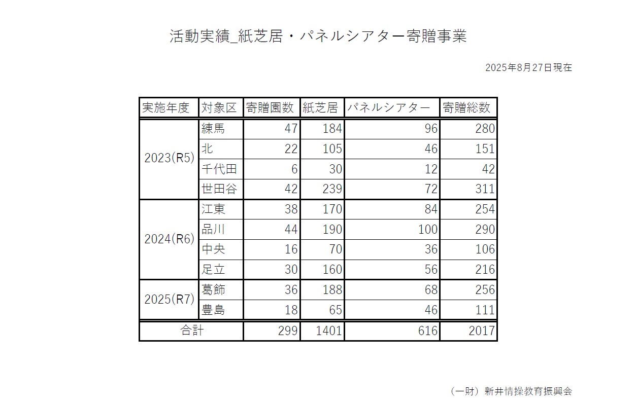 2023年度より進めております、紙芝居・パネルシアター寄贈事業の活動実績です。